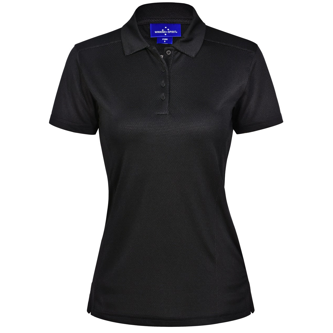 Made from a unique blend of 50% poly and 50% bamboo charcoal, this polo offers both comfort and performance. The silky-soft fabric is breathable, moisture-wicking, and anti-bacterial, providing a thermoregulating and hypoallergenic experience. Naturally de-odorizing and anti-static, it’s ideal for all-day wear. The self-fabric collar with knitted interlining adds a refined touch, while the easy-care, iron-free fabric ensures convenience. With a UPF 50+ rating, this polo is as protective as it is stylish. Also available in men's sizes.
