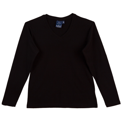 Soft, flattering, and designed to move with you, this long sleeve V-neck tee is made from a cotton jersey stretch blend of 95% cotton and 5% elastane at 180gsm. The smooth silhouette and breathable feel make it a standout everyday essential, while the stretch fabric offers added comfort and shape retention. A sleek base for showcasing your brand with style, it pairs effortlessly with the matching men's version for a unified branded look.