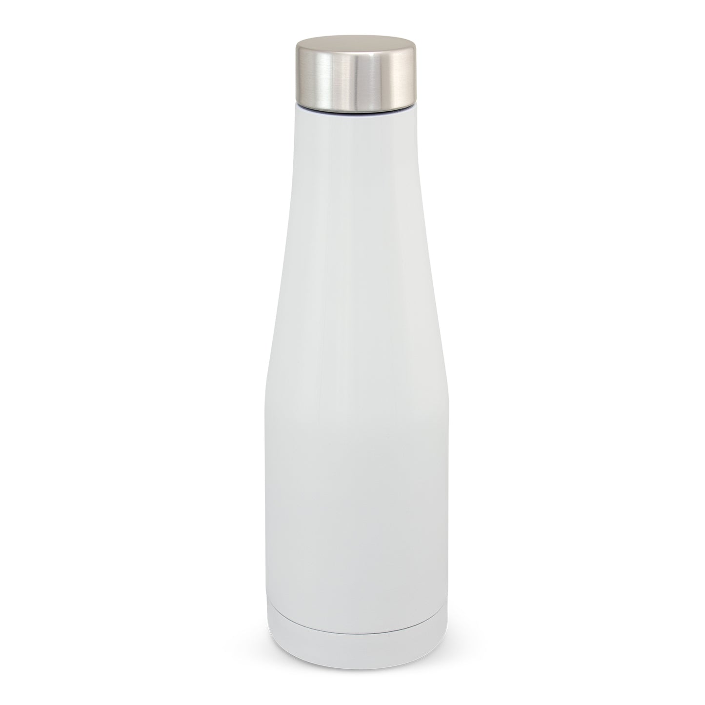The compact 500ml Velar drink bottle features a sleek, streamlined design and double-wall vacuum insulation, keeping beverages cold for 24 hours and hot for up to 12 hours. It includes a secure screw-on stainless steel lid and is BPA-free, with a shiny steel finish achieved through laser engraving. Presented in a black gift box, this stylish bottle is handwash only and comes in two finishes: gloss-painted white and matt-painted black.