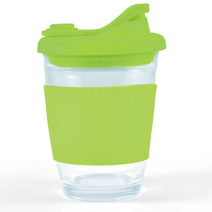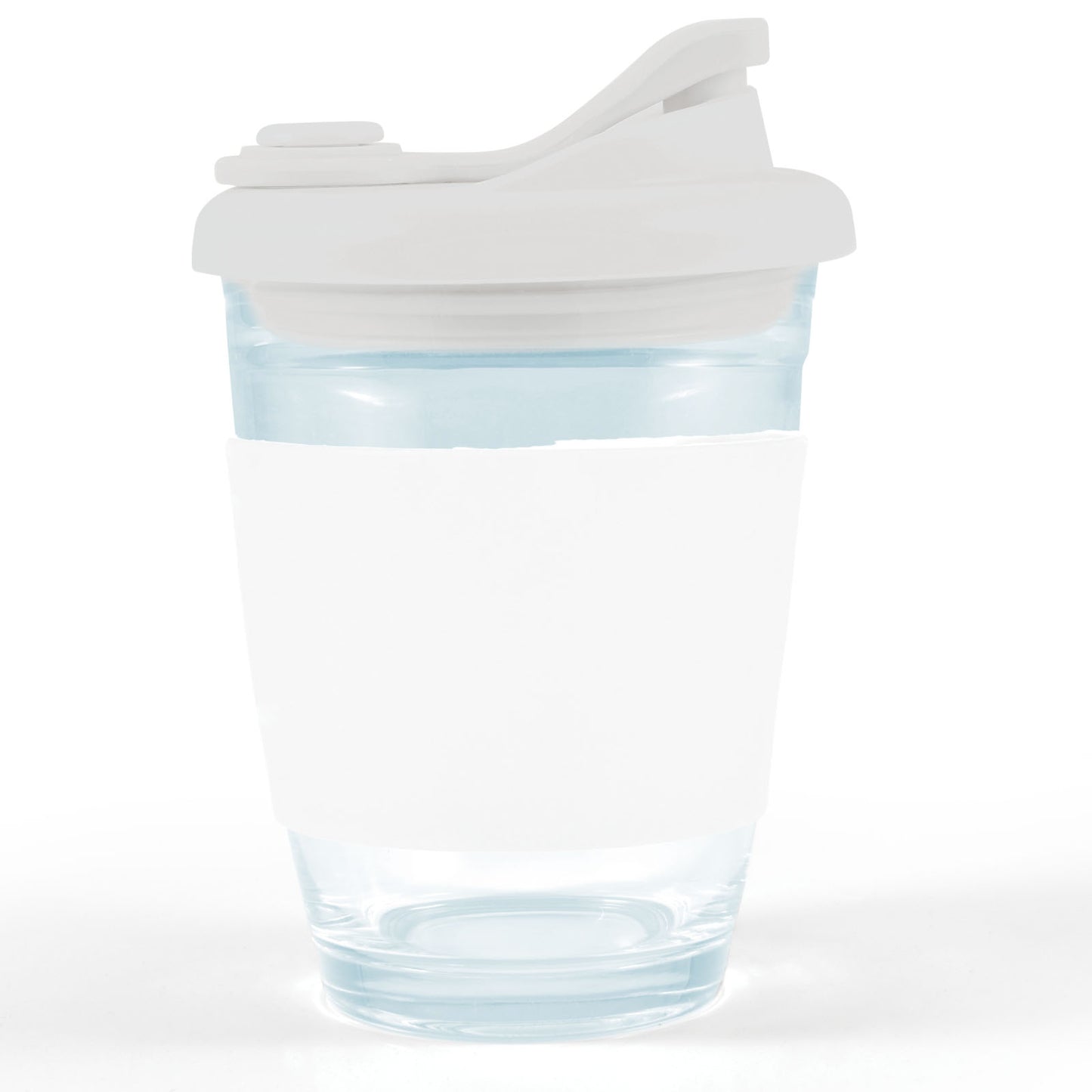 Bring a splash of colour to your coffee run with this 320ml reusable glass cup. Mix and match your favorite colours to make your brand stand out. Made from durable borosilicate glass, it’s designed to handle thermal changes while keeping your coffee tasting fresh. The snap-fit lid, protective silicone sleeve, and clip-in plug come in your choice of colours—perfect for bold, branded combinations that stand out. Supplied in a kraft gift box for easy presentation.