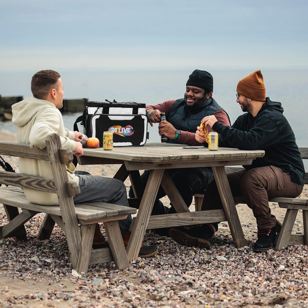 Designed for long-lasting performance, this 19L cooler keeps ice frozen for up to two days with SuperFoam® high-performance insulation and a Therma-Flect® radiant barrier. The Ultra Safe® leak-proof lining ensures easy cleaning, while the durable Rhino-Tech® exterior resists water and stains. A large zippered pocket, two mesh pockets, and elasticised gear straps offer added convenience, and the adjustable Backsaver® shoulder strap helps reduce body stress when carrying. A smart way to highlight your brand with a practical, high-quality cooler.