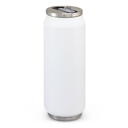 This ultra-modern 450ml double-wall vacuum insulated stainless steel bottle features a unique can-shaped design that makes a bold statement. It has a secure screw-on lid with a flip-out drinking valve and straw for effortless sipping. BPA-free and designed for premium branding, with laser engraving revealing a striking finish. Available in sleek colours, it’s presented in a black gift box for a polished look.
