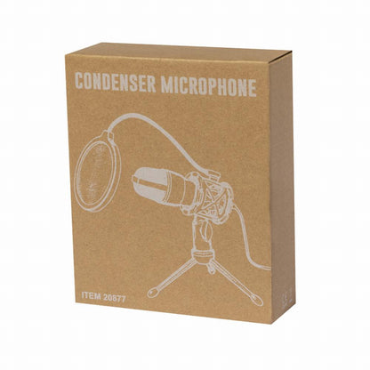 Capture crystal-clear sound with the Densha Condenser Microphone, designed for high-quality audio in live broadcasts, video calls, podcasts, and more. Equipped with a noise reduction system and anti-pop filter, it ensures professional sound quality by preventing unwanted noises. The microphone features multicolour LED backlighting for added style and uses a plug-and-play USB connection compatible with PCs and other devices. Complete with an adjustable tripod for versatile positioning, it rotates 360º and adjusts vertically for optimal placement. Presented in an eco-friendly kraft design box, it’s an ideal branded item for businesses looking to make an impact.