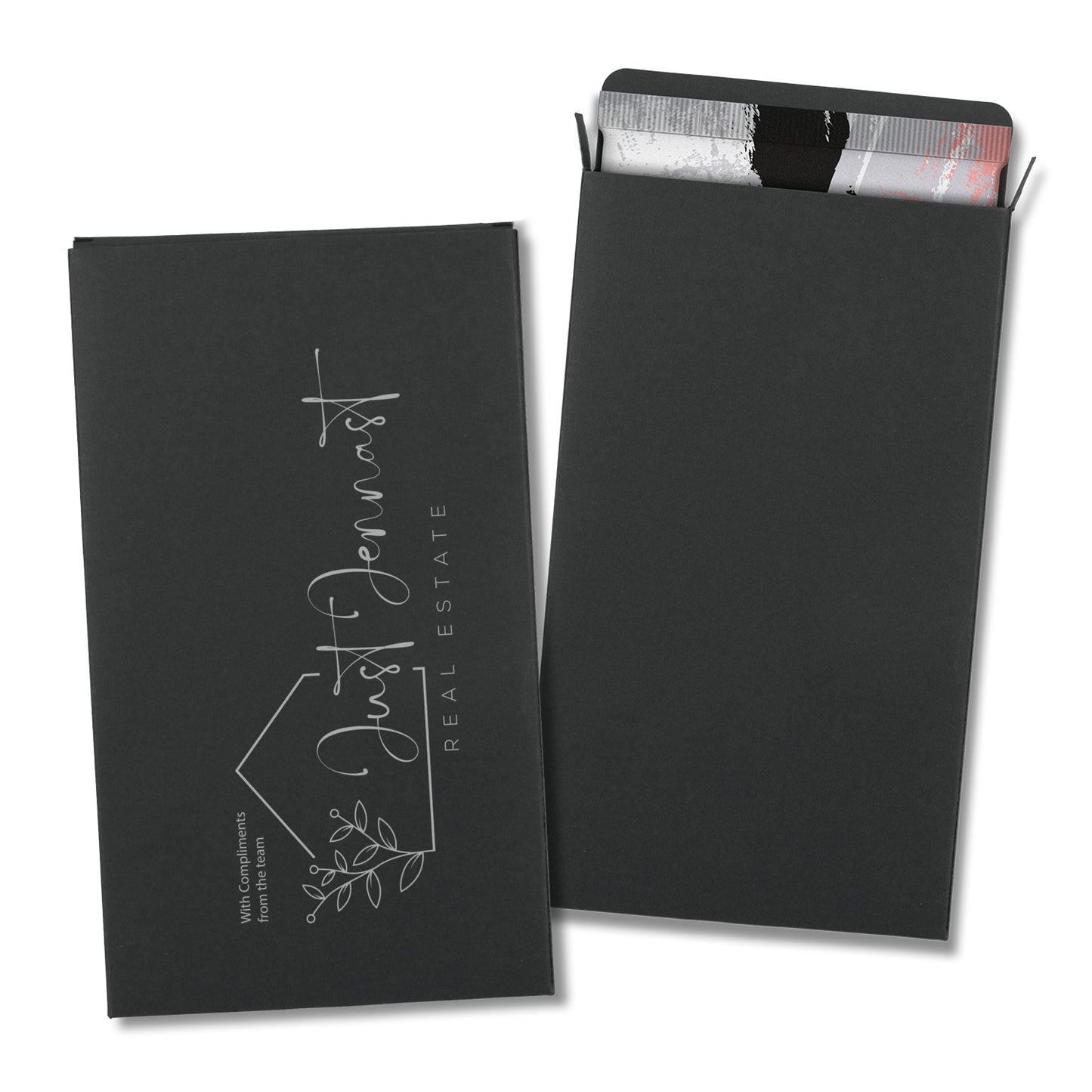 Make your brand stand out with this sleek large gift box, designed to hold 200–250g chocolate blocks and elevate any gifting experience. Crafted from sturdy 300gsm black kraft card, it's ideal for kitting or promotional giveaways and folds flat for convenient storage. With full branding potential across the surface, your custom design transforms this simple sleeve into a memorable touchpoint.
