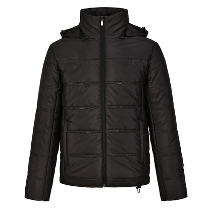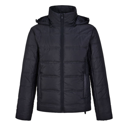 This versatile jacket combines functionality and style, perfect for custom branding. Made from 100% polyester matte pongee with a water-repellent PU coating, it features 100% recycled PET insulation for warmth. Designed with a detachable hood, zip-to-chin closure, and sewn-in wrist ribbing, it keeps out wind and rain while maintaining comfort. With deep zippered side pockets, internal buttoned pockets, and a seamless 3D cut design, it’s wrinkle-free and easy to wear. An internal embroidery zip makes adding your brand effortless, making it ideal for showcasing your logo.