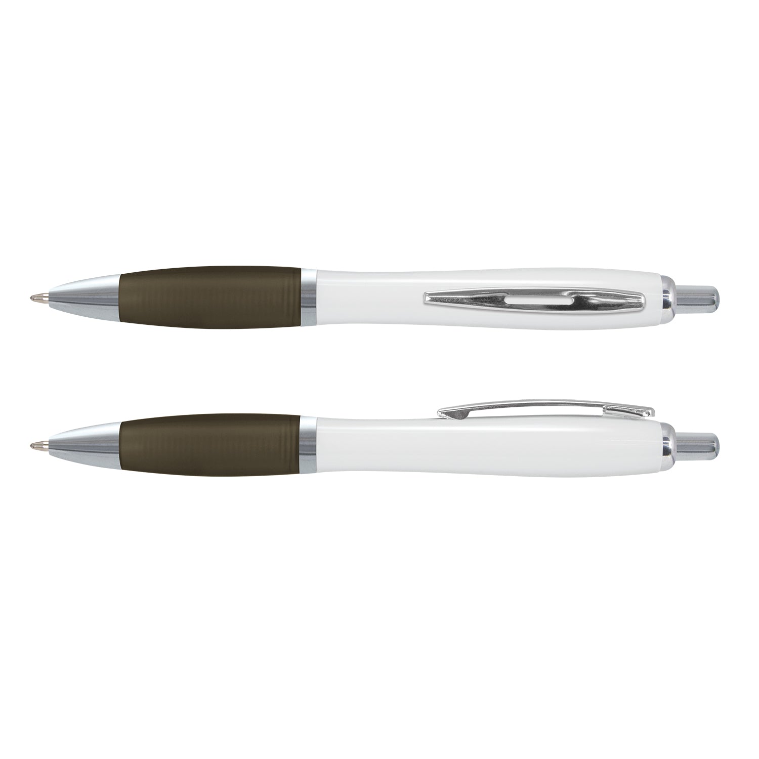 The Vistro Pen - White Barrel is a sleek retractable plastic ballpoint pen featuring a glossy white barrel, a frosted translucent soft-touch grip, and shiny chrome trim. Equipped with a black Trends large volume refill, it offers an impressive 1800 metres of smooth German-manufactured Dokumental ink. Perfect for showcasing your brand, the pen can also be presented in an optional pen sleeve for a professional touch.