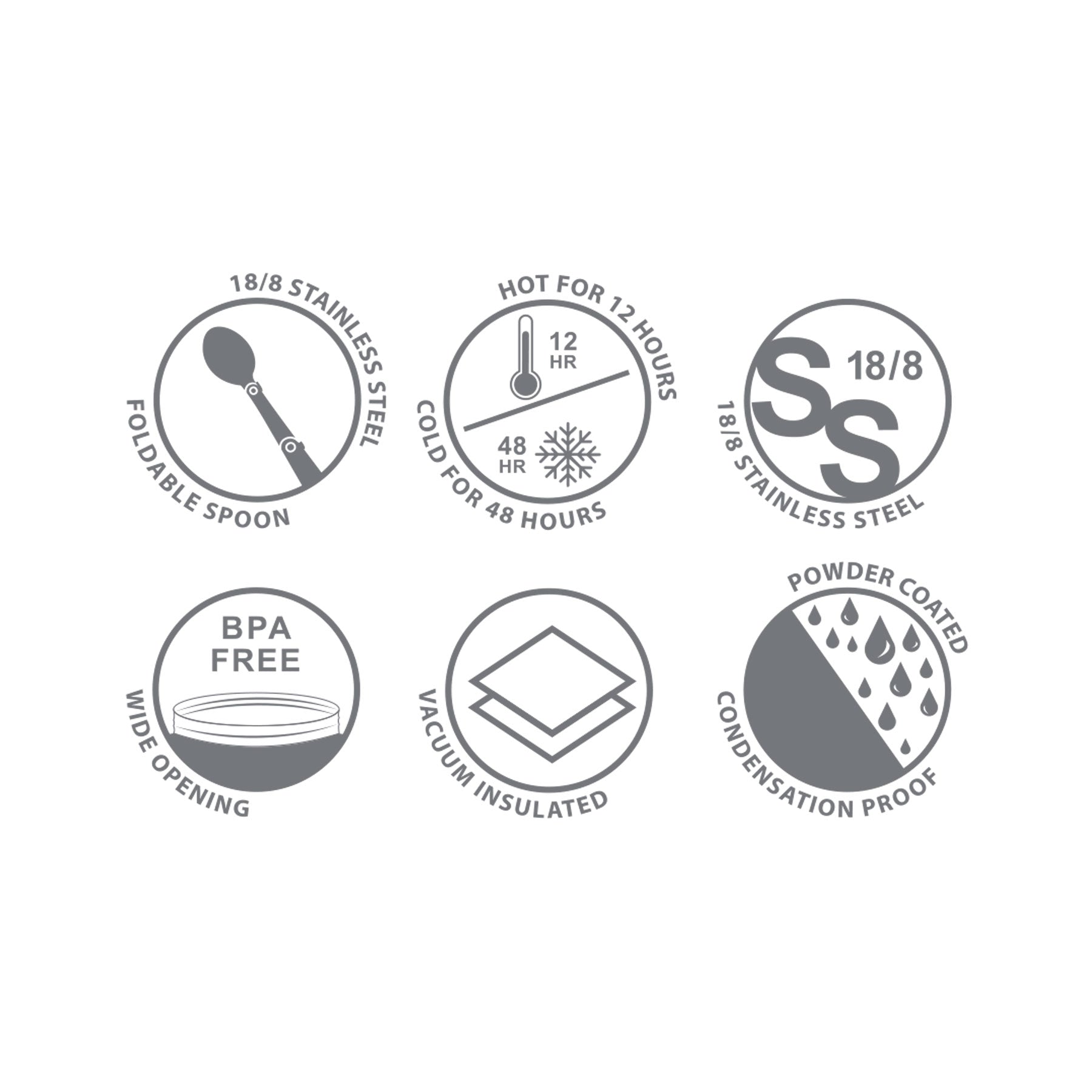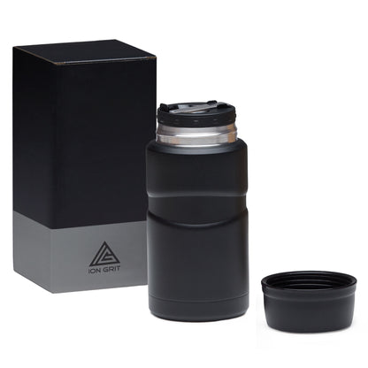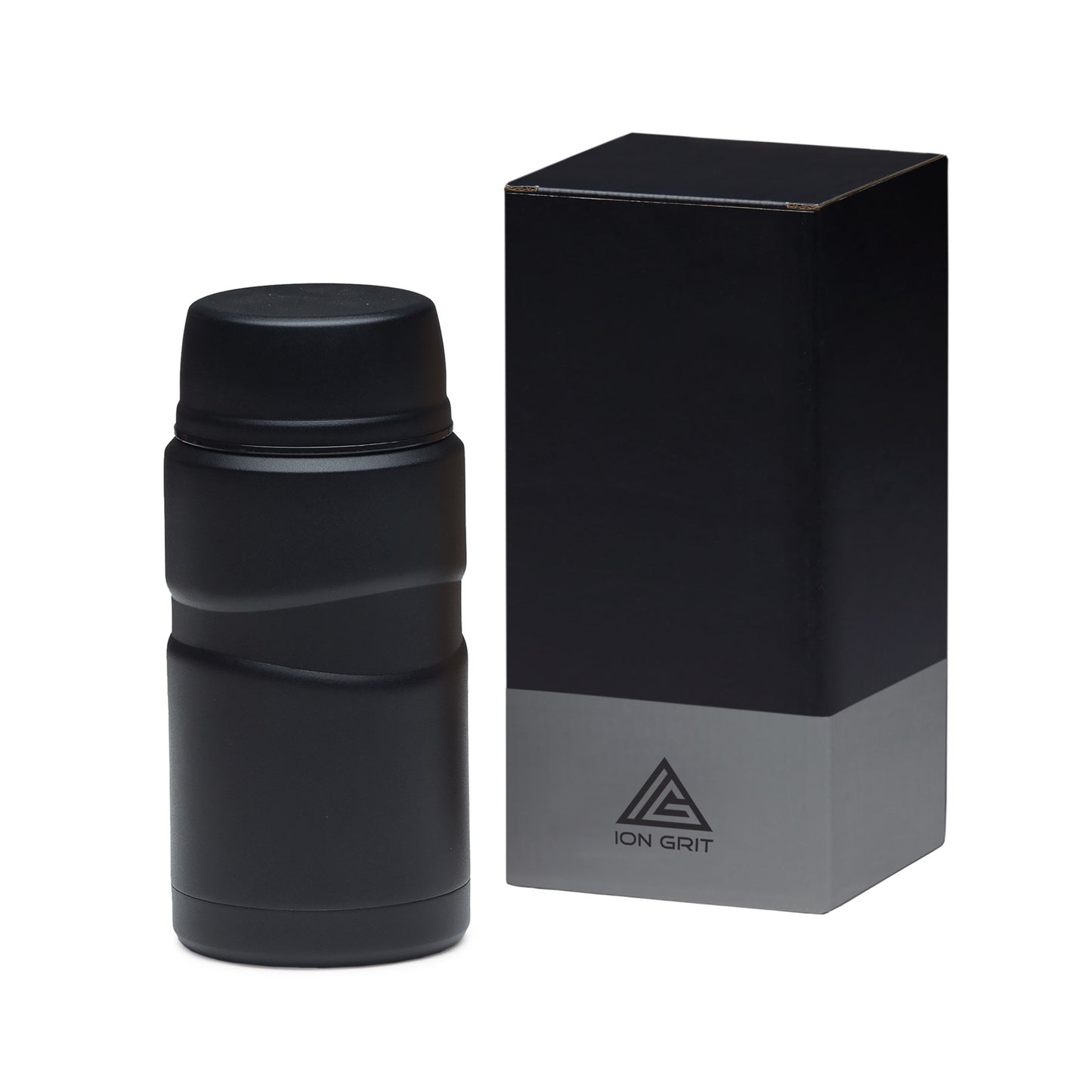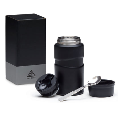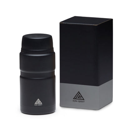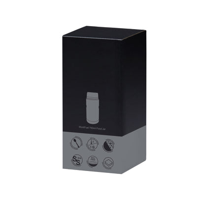 The WorkFuel 750ml Food Jar combines durability and functionality, made from double-walled 304-grade stainless steel with a copper-plated inner wall for superior insulation. It keeps food hot for up to 12 hours and cold for 48 hours, with a condensation-proof powder-coated finish for easy handling. Featuring a leak-proof, twist-on lid that doubles as a food cup, an integrated stainless steel folding spoon, and a wide mouth for easy filling, this BPA-free jar is ideal for meals on the go. Supplied in an Ion Grit presentation box, it's a stylish and practical item for showcasing your brand.